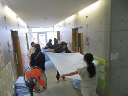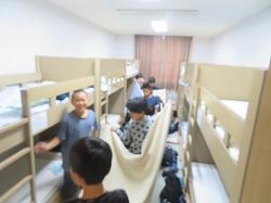 2日目の朝6時半の起床でベッドシーツなどの片付けと荷物整理、部屋の清掃を行いました。
