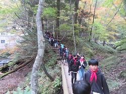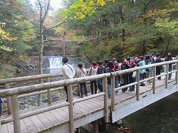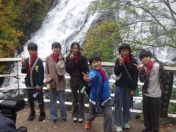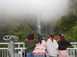 霧がかかっていて、華厳の滝の上の方が見えにくかったのですが、子どもたちは大きな滝の姿に驚いていました。