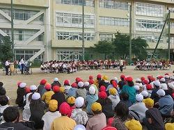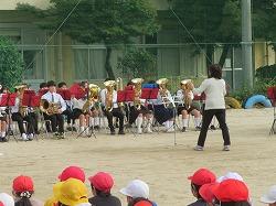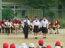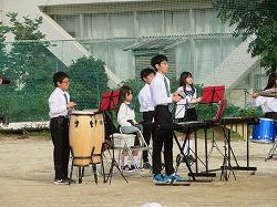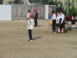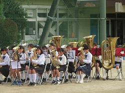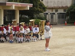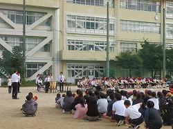 朝の時間に、10月30日に出場する小中学校合同音楽会に向けての音楽部壮行会が校庭でありました。