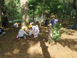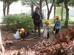 東部スポーツパークに到着してからは、それぞれに地面に落ちているカシやクヌギ、コナラなどの実を拾いました。