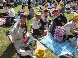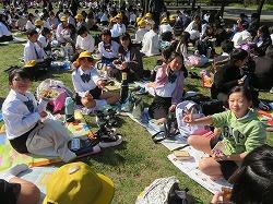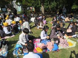 1年生は1時間目から2時間目にかけて、東部スポーツパークに行き、どんぐり拾いをしました。