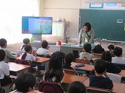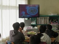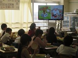 給食委員会の子どもたちが「ギョウザがいなくなり、さがしています」という絵本の読み聞かせ動画をつくり、給食にジャンボ揚げギョウザが出る今日に合わせて動画を流しました。