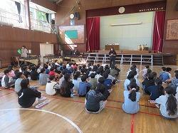 全校朝会の前に、先日行われた小学校陸上大会や健歯コンクールなどの表彰を行いました。。