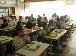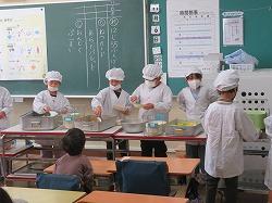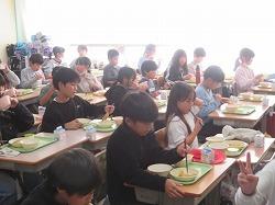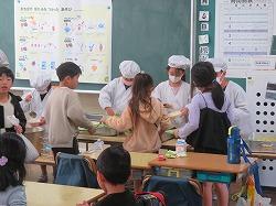 子どもたちは給食でギョウザのおいしさとお話の楽しさの両方を味わいました。