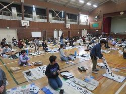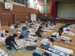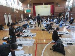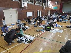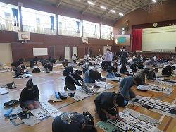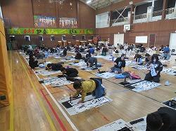 1,2時間目に6年生が、3,4時間目に5年生が体育館で書き初め大会をしました。