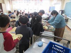 令和8年最初の給食です。七草ごはんや紅白の白玉が入った団子汁などをおいしく食べました。