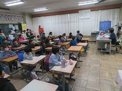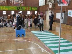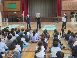 松戸警察署の方々が来て、体育館で1年生に交通安全教室をしてくださいました。