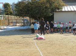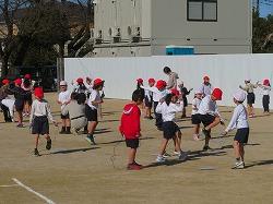 昨日降った雪が校庭の端に残る中ですが、子どもたちは外で元気に運動や遊びをしました。