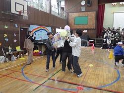 子どもだけの競技や保護者と一緒の競技、先生方による映像など、6年間を振り返りながら親子の交流を深めました。