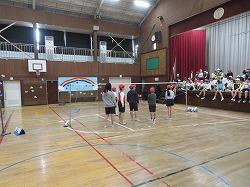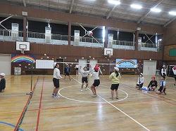 最初にキャッチソフトバレーボールのトーナメントをしました。
