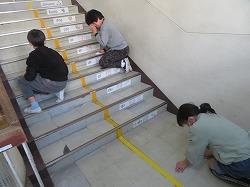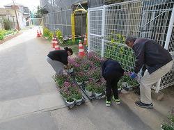 まず、昨日にあった卒業証書授与式の後片付けをしました。