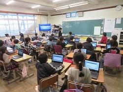 タブレットで春休み中に行う健康観察やドリルなどができる、L-Gateの確認をするクラスもありました。