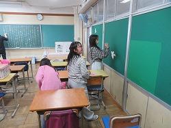 明日の卒業式に向けて、5年生が体育館や教室、廊下などの清掃や装飾、準備などを行いました。
