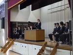体育館では、着任式が始まります。
