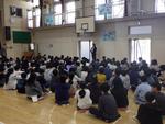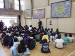登下校の注意を聞いているクラス