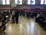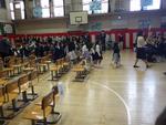 体育館は、保護者でいっぱいです。