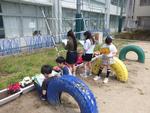 登校をしたら、ランドセルをかたして、外で遊ぶことができます。