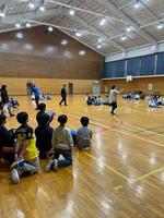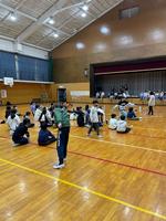 その後、体育館で学年レクです。身体を動かしたり、部屋ごとに考えた学校丸ばつゲームをして楽しみました。学校の体育館よりも広く、子どもたちはのびのびと活動をしていました。