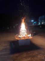夕食を食べたら、キャンプファイヤーです。係の子が中心となり、フォークダンスや歌、猛獣狩りと短い時間でしたが充実した時間となりました。子どもたちには、火の神から授かった3つの火を心に灯し続けてほしいと思います。