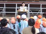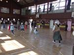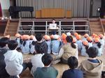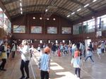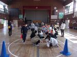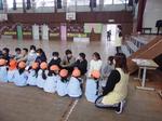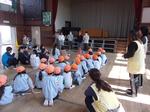 5年生の総合学習の一環で八景台保育園の園長先生始め、保育士の先生方、園児が体育館に来校しました。