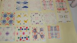 他にないかと探してみたら、2年生の廊下のティッシュペーパーに色付けした作品の掲示も涼しげです。