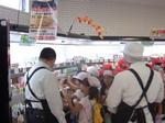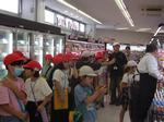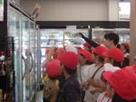 3年生は人数が多いので、前回サミットに行かなかったもう半分の子たちが見学に行きました。案内の係の方に入口でカートの種類が4種類あることを教えてもらいました。店内では、野菜、肉、魚のバックヤードも見せてもらいました。お弁当やお米、パン、お菓子の売り場を見ました。納豆など陳列のために棚が前に動く工夫があることも知ってびっくりしていました。最後の質問コーナーでは、なぜこの職業に就いたのかを聞いていました。「人にとって食べることは大切なことだから、食べ物を扱う仕事に就きたかったから」という話に子どもたちは、納得していました。他に衛生面や鮮度にこだわるということも心に残ったと思います。産地直送で安く仕入れている工夫も、リサイクルに力を入れていることもわかりました。