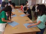 温かく的確なご指導ありがとうございました。その後は刷りの方法も学び、子どもたちは大喜び、担任の先生も上手に刷って作品を仕上げていました。