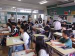 授業は膨大な資料を扱いながら、テキパキと進んでいました。たくさんの参観者がいましたが、落ち着きのある5年生で、集中して学んでいました。価値のあるつぶやきもありました。3年目の若手の先生で初めて高学年を受け持っていますが、落ち着いた態度で1年1年着実に成長されているなと感じました。また、左手が利き手だと板書の時に黒板の字を子どもたちから「先生見えませーん」と言われないのが利点です。