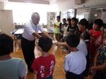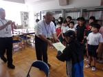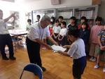 最初に市内理科作品展とバドミントンの県大会準優勝・3位、空手の組手全国3位の表彰です。先月に引き続き、寒風台小学校では、いろいろなスポーツに取り組んで、優秀な成績をおさめる子が多いですね。その後、3年生以上の各クラスの学級委員に学年別で任命書を渡しました。
