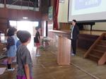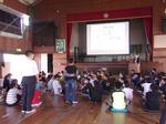 今日は、松戸市医師会のまちっ子プロジェクトを実施していただきました。5年生が体育館に集まり、松戸市の医師の話を聞きました。