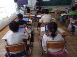 今日の2時間目に2年生の教室で算数グループの先生の授業公開がありました。「形を2つに仲間分けするにはどうしたらよいか」と三角形と四角形を分ける問題でした。各自でタブレットを使って、6つの形を移動させて2つに仲間分けをして、その下に理由を書き込んでいました。学びポケットの発表ノートを使用しました。できた子は先生機に送ります。三角形と四角形に分けた後は、その理由を考え、角と直線の数に着目し、今日は「頂点」と「辺」という言葉と概念を新しく学びました。子どもたちは毎日学校に来て、必ず新しいことを学んでいます。それを忘れずに定着していけるといいですね。毎時間1つ大切なことがあるとすると、5つか6つのことを毎日新しく学ぶことでしょう。すごいことですね。今日の授業者は、大変ベテランの先生で、授業内容は無駄をそぎ落としたすっきりしたわかりやすいものでした。わかったことで小まとめをした後、練習問題をして、その後、各自でまとめを書くところまで、きっちり45分に収まりました。