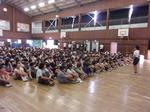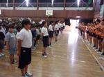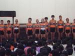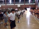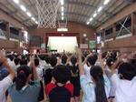 壮行会の内容は、選手入場、活動内容紹介(動画)、選手紹介、部長挨拶、児童会役員挨拶、全校応援、校長先生の話、選手退場でした。