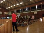 今日の昼休みに体育館で陸上部の壮行会が行われました。来週10月8日(水)に学校のすぐ近くにある松戸運動公園陸上競技場で開催されます。