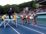 最初の種目は、男子の4×100mリレーでした。合同練習会の時に出した57秒の記録を2秒短縮し、7位に入賞しました。
