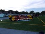 閉会式を終え、集合写真を撮って学校に戻ってきました。みんな元気で、嬉しくてにこにこ笑顔です。みんなでとった総合3位です。出場した選手、サポートに回った子どもたちも充実した喜びのある顔でした。