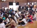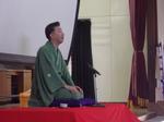 最初に落語について、雷門小助六師匠から教えてもらいました。扇子と手拭いでいろいろな所作を演じてもらいました。プロの噺家さんなのでいつの間にかみんな引き込まれていきました。