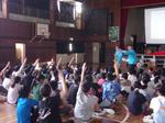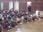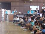 税務署の職員の方もたくさん来られていました。その後、税金の使われ方の話を聞きました。学校、医療、消防など多くのことが税金がないと困ります。時々クイズがでて、正解すると扇子をもらえるというので、みんな必死に手を挙げていました。答えが当たると本当に扇子をもらっていました。