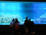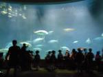 ドーナツ型の大水槽の中を群れで泳ぐマグロの迫力を間近で見て、「すごい」「大きい」「速い」と感動していました。