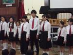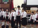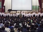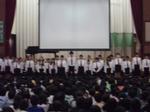 今日は、吹奏楽部長の話の後、発表曲の「ディズニープリンセスメドレー」の演奏風景をスクリーンにプロジェクターで投影して見ました。何曲もプリンセスの曲が続きます。子どもたちはみんな吹奏楽部の演奏に聞きほれました。当日は、仲の良い4年生~6年生の40名が参加します。寒風台小の素敵な音を響かせて演奏してきてください。