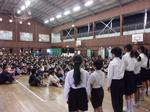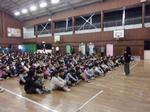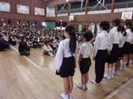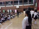 今日の昼休みに体育館で児童会主催の吹奏楽部壮行会を行いました。来週、小中合同音楽会があります。10月29日(水)に森のホールで演奏します。吹奏楽部は春、夏、秋の朝と帰りに毎日練習をしてきました。今年から顧問の先生が変わりましたが、朝練習を復活して、朝もがんばってきました。各自で楽器の手入れをして、音出しをして、パートごとに練習します。最後に全体練習を行います。1年間コツコツと練習して、1回の演奏に全力を注ぎます。