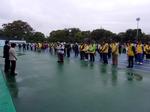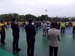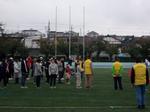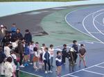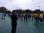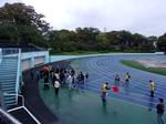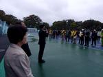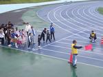 朝からの雨で開催が危ぶまれましたが、9:00の開会式には曇りになり、松戸運動公園陸上競技場で明第一地区 社会福祉協議会 市民運動会が盛大に開催されました。開会式に招待をいただきましたので、来賓として、松戸市長、教育長、社会福祉協議会長の方々の後に、ご挨拶をいたしました。明第一地区は、本校に通ってくる子たちの町名では、松戸新田、寒風台、稔台にあたります。スタンドには、各町会ののぼり旗が立てられていました。