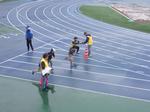 全天候型のグラウンドですから、小雨決行(荒天候中止)とポスターには書かれており、実施することができました。玉入れの玉が濡れてしまうとのことで、玉入れ以外の種目が行われました。走る種目は大丈夫でした。