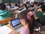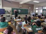 今日の3時間目に3年生の教室で授業公開がありました。2年目の先生です。大学で理科を専門に学んでいたので、今年は理科で研修をしています。光の性質の単元で、「日光による温まり方はものの色によってちがうのだろうか」という学習問題でこの時間は始まりました。自分で予想を立てるのに、タブレットを使います。赤、青、橙、緑、黄、紫、黒、水色、薄紫、薄橙、白の11色の色紙を、虫眼鏡で光を集めて煙が出るグループと煙が出ないグループに分けて移動させました。自分の考えを提出箱に入れます。その後、予想を発表し合い、実験方法を確認しました。虫眼鏡を使うので、絶対に太陽を見ないようにしましょう。