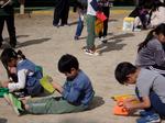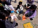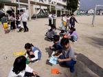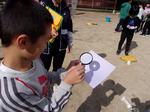 校庭に出て、実際に色紙に虫眼鏡で太陽の光を集めてみました。20秒以上は当てないようにします。早い色は8秒くらいで煙が出てきます。20秒経っても煙が出ない色もありました。一人一色で実験したので、学級に戻ってすべての色の結果をまとめました。