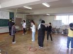 今日の1時間目にかぜのこ学級1組で自立活動の授業公開が行われました。子どもたちは2人一組になり、一方がハチマキで目隠しをして、もう一方がガイド役になります。目隠しされた人が、ケンステップの円の中に入ると、その色により得点が入ります。うまく誘導して高得点を目指していました。時間が来ると交代して行いました。振り返りでは、どう誘導したら、目隠しされた人が怖がらずに歩けるかを意見交換していました。今日は、卒業アルバムの授業風景写真の撮影日でした。この授業もカメラマンが写真を撮っていました。