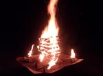夕食を食べたら、キャンプファイヤーです。係の子が中心となり、フォークダンスや歌、猛獣狩りと短い時間でしたが充実した時間となりました。子どもたちには、火の神から授かった3つの火を心に灯し続けてほしいと思います。
