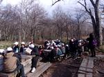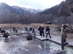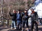 湯滝で写真撮影をして、バスに乗り、湯の湖で降りました。湖の畔で学年全体写真を撮り、日光湯元を散策しました。もう日光の山並みは、上の方は雪が積もっていました。