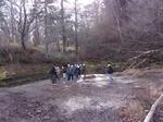 午後はまずバスを赤沼茶屋で降りて、湯滝まで戦場ヶ原のハイキングをしました。赤城山の大百足と男体山の大蛇が戦った場所と言い伝えがあるところです。赤茶けた泥もあり、本当に赤沼という感じです。土の栄養が少ないのか、白樺なども枯れて倒木が多く、火山噴火の影響でできた、もともとは湿地帯です。ラムサール条約で保護されていて、この地に特別に見られる植物が群生しています。珍しい野鳥もいるようです。整備された木道や未整備の湿った道を2時間ぐらいかけて4.5km歩きました。他の学校の子どもたちとすれ違い、挨拶を交わしました。アップダウンのある道で自然を満喫しながらも足が疲れました。山の天気は変わりやすく天気雨が降った時は、とても低い位置に虹が見えました。途中で休憩をとり、休みながら、みんな完歩することができました。だんだん目的地が近づき、木々の間から白い湯滝が見え、滝の音が聞こえてくると「もう少しだ」と歓声が上がりました。