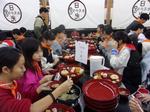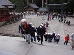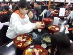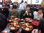 歩いて参道と二荒山神社を通り、昼食会場の磐梯日光店へ、最後の食事の赤いお椀の大杯膳を食べて、お土産タイムになりました。金箔カステラが人気でした。その他にもキーホルダーや置物、お菓子類を買っていました。昼食に日光名産の湯波のスープがでていて、それが美味しかったのでお土産にした子もいました。たまりづけもお家の方に買っている子もいました。