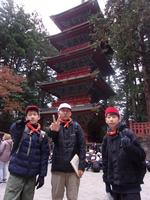 バスの中から猿たちを眺め、龍頭の滝の上流で降りました。ここから下流まで歩き、龍の頭のところで写真撮影をしました。また、バスに乗り、最大の見学場所、日光東照宮へ、最初に大鳥居の前で集合写真を撮り、五重塔からグループ行動で東照宮に入り見学しました。鳴き龍、陽明門、唐門、本殿、三神庫、奥の院、眠り猫、三猿、叶杉、神馬等をたっぷりと見学し、トイレを済ませてから五重塔前に集合しました。